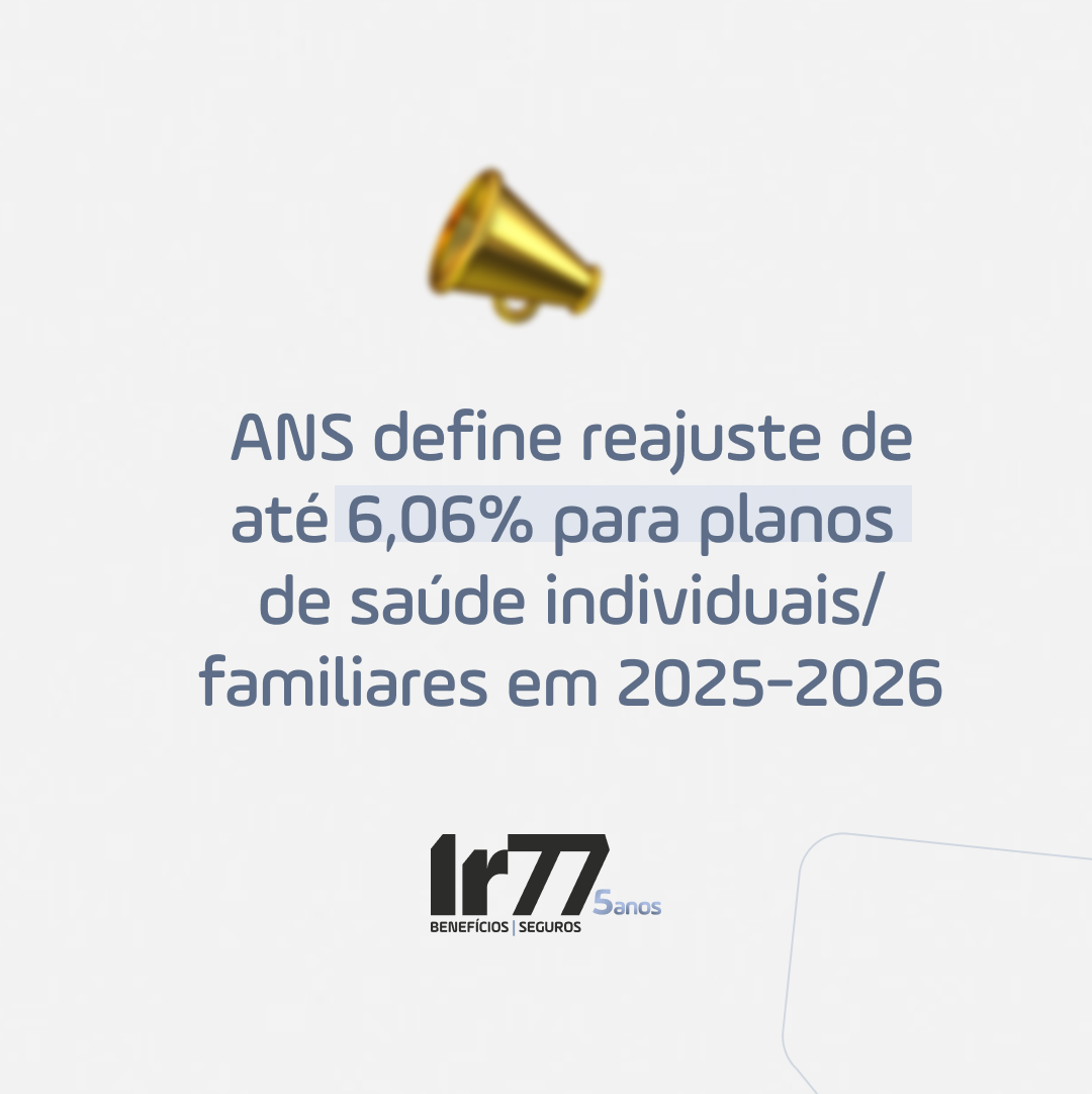 Reajuste de Planos Individuais e Familiares: ANS divulga teto de 6,06% para 2025-2026 A Agência Nacional de Saúde Suplementar (ANS) anunciou o novo percentual de